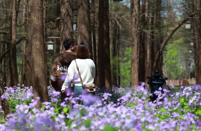 清水潭的池杉林深处,林下的二月兰已经盛放,淡紫的花穗缀满小径,风过处,花影摇曳,暗香浮动。