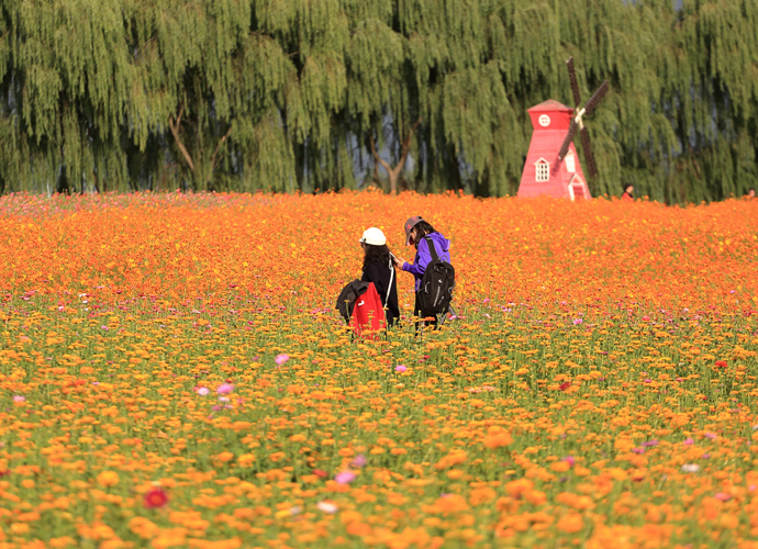 四季更迭,每年的五月至六月,十月至十一月,清水潭会为游客打造出不一样的花海盛况。