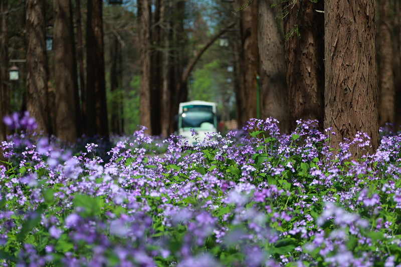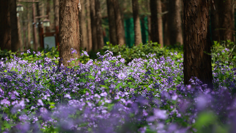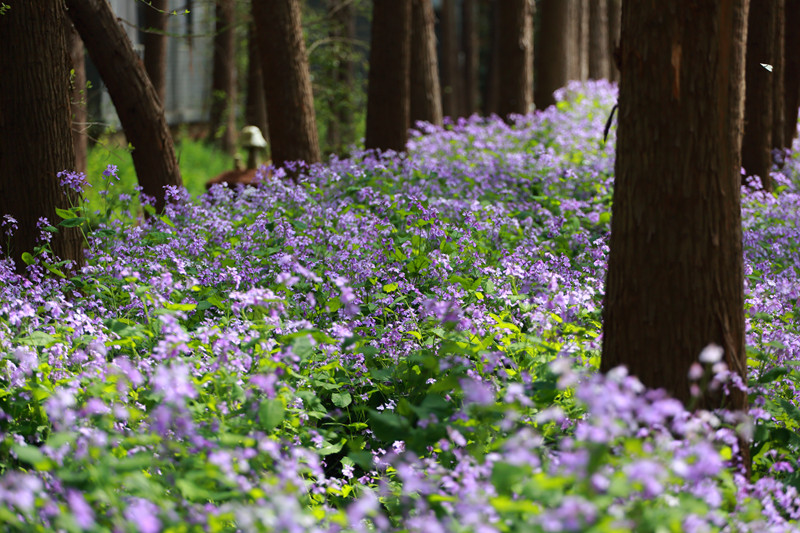 每年清明前后,清水潭畔二月兰与梨花次第盛放,蓝紫色的花影与素白的雪瓣分别在清水潭的池杉林的东西两边与新绿的杉叶相呼应,在阳光与碧水的映衬下交织成一幅静谧的春景图。