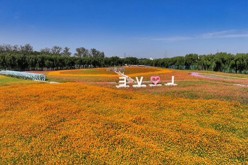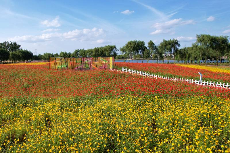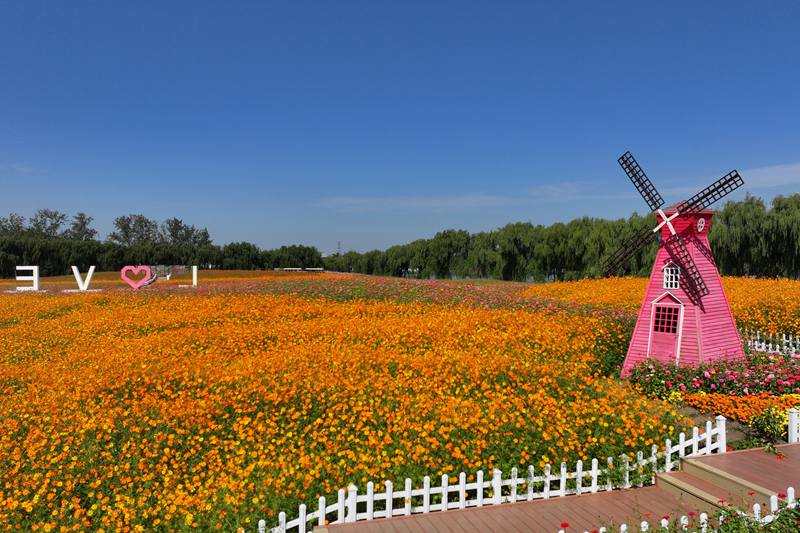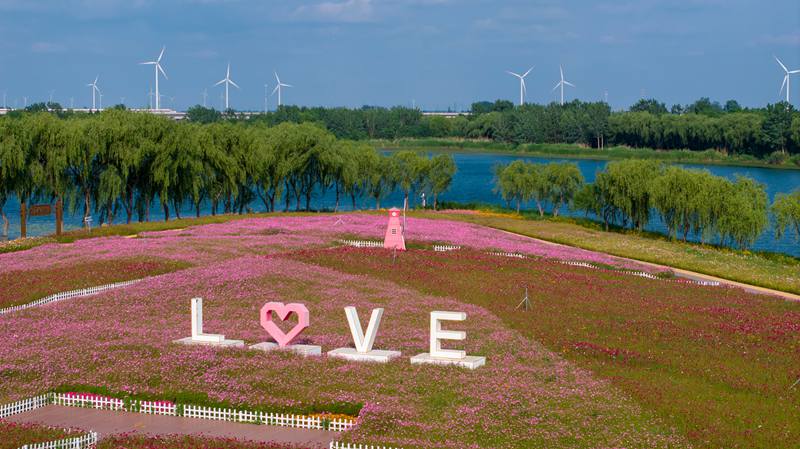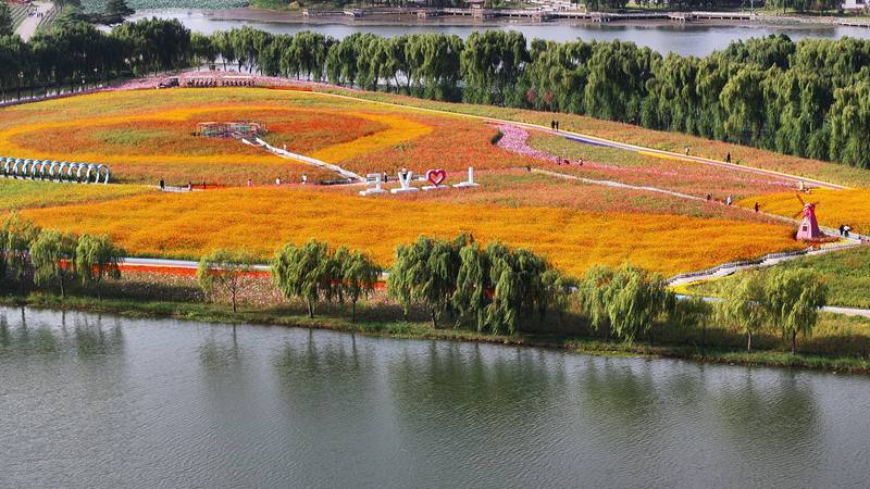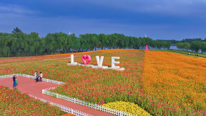 清水潭花海的色彩是大自然最慷慨的馈赠,从温柔的粉白到热烈的艳红,从明媚的鲜黄到深邃的紫罗兰……在这片以爱情为主题打造的花海中,“风车”、“花廊”、“心弦”等艺术装置打卡点点缀其间,它们与五彩斑斓的花儿构成了美丽的画卷。