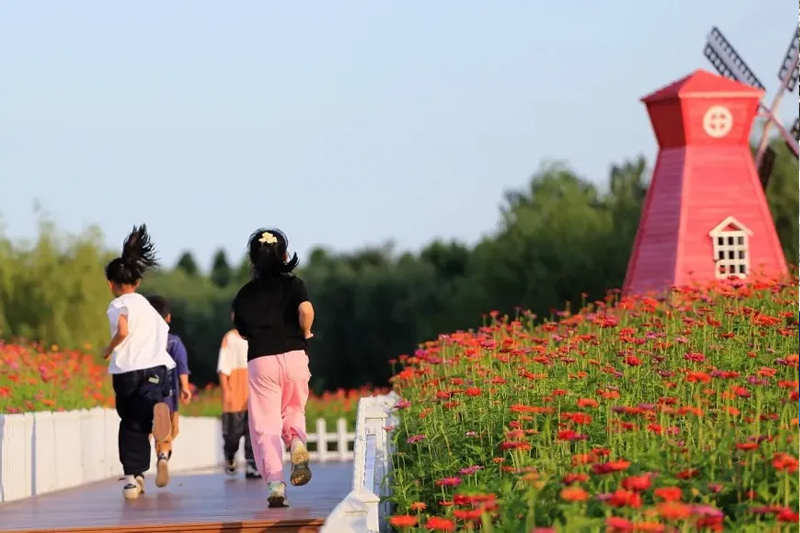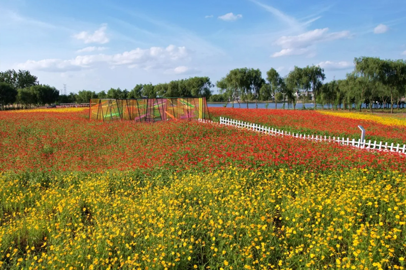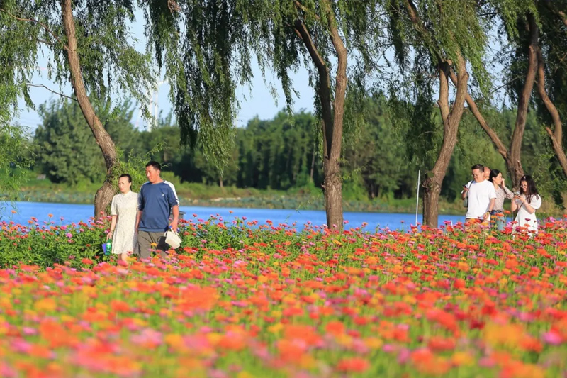 与此同时,清水潭花岛上繁花成海。红色热烈似火,粉色温柔如梦,黄色明快似光,紫色浪漫如诗,各色花卉层层叠叠相拥,风过时便掀起阵阵 “花浪”,裹挟着清甜的花香扑面而来。