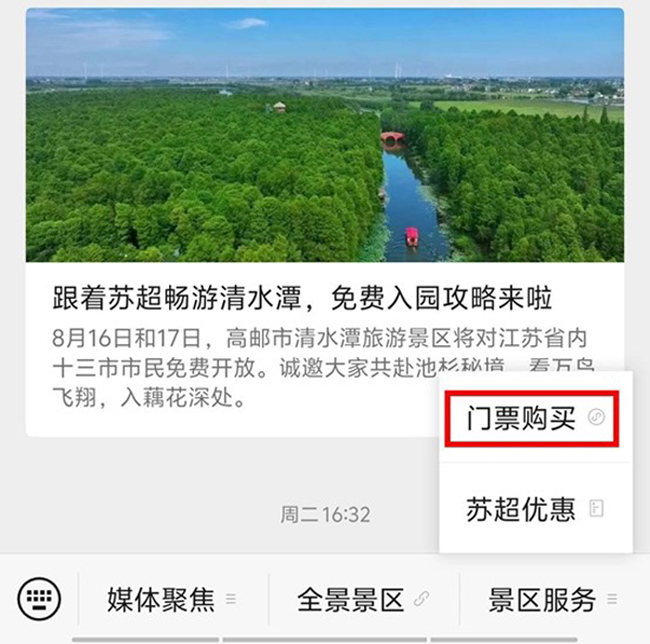 2025扬州市城市足球联赛高邮足球队主场比赛日所在的周六和周日,清水潭将面向全面游客免费开放入园。游客可以按照如下步骤进行门票预约。